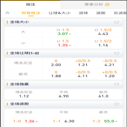 在这里,习惯用 1 X 2 来代表球队的赢平输,这也就是欧洲赔率的三项赛果。因为亚盘的加入,所以最简单的内容反而不那么容易被找到了。但只要用心寻找,你会发现所有你想到或想不到的投注内容,在pingbo都有。
